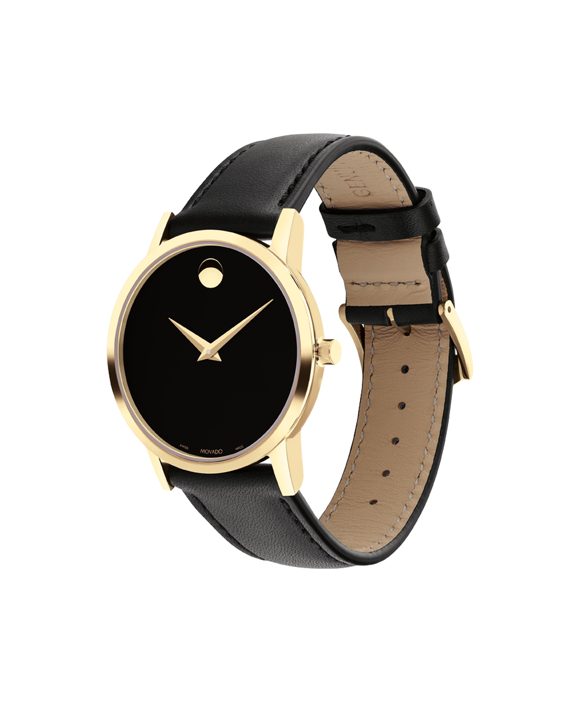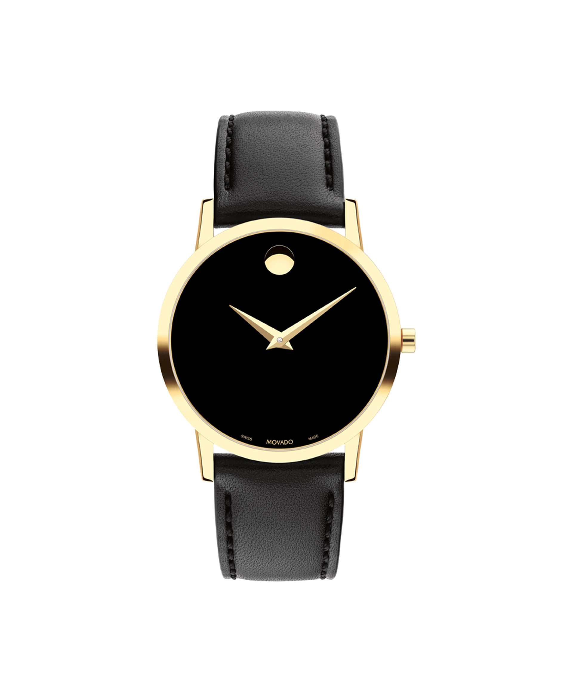 The Museum Classic is the purest interpretation of Movado's Museum Dial—an icon of modern design and featured in art institutions around the world. This 33mm watch features a black dial, yellow gold tone dauphine hands, and our signature dot at 12 o'clock.