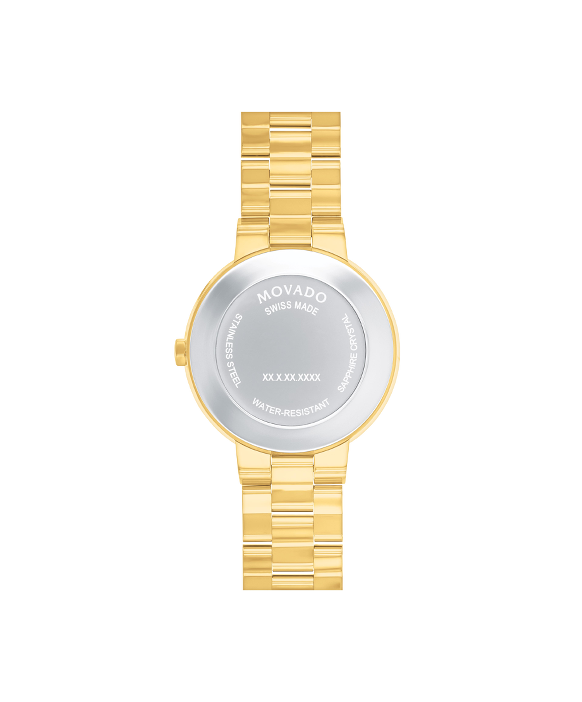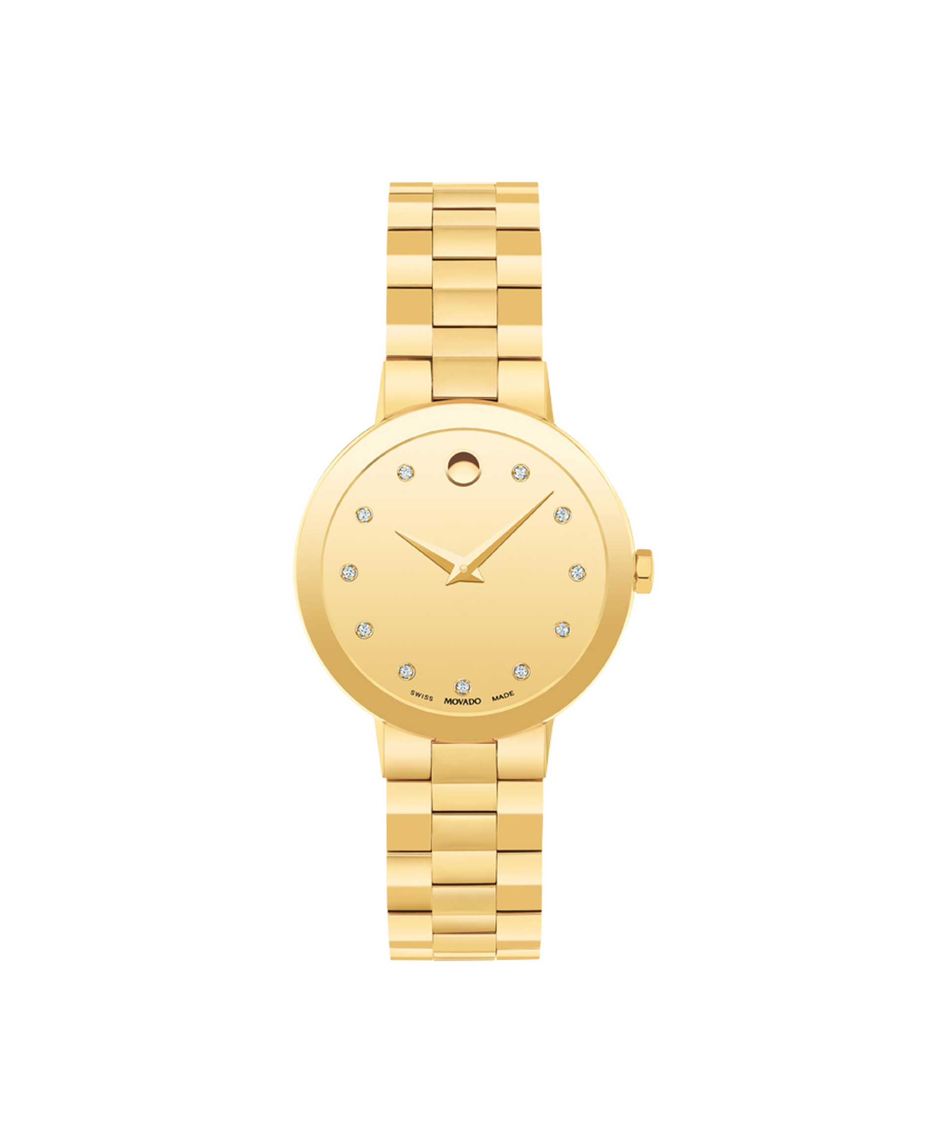 The Sapphire is strikingly streamlined with sleek edge-to-edge sapphire crystal and an integrated bracelet. This 28mm watch features a yellow gold-tone mirror dial, diamond hour markers, and our signature at 12 o'clock.