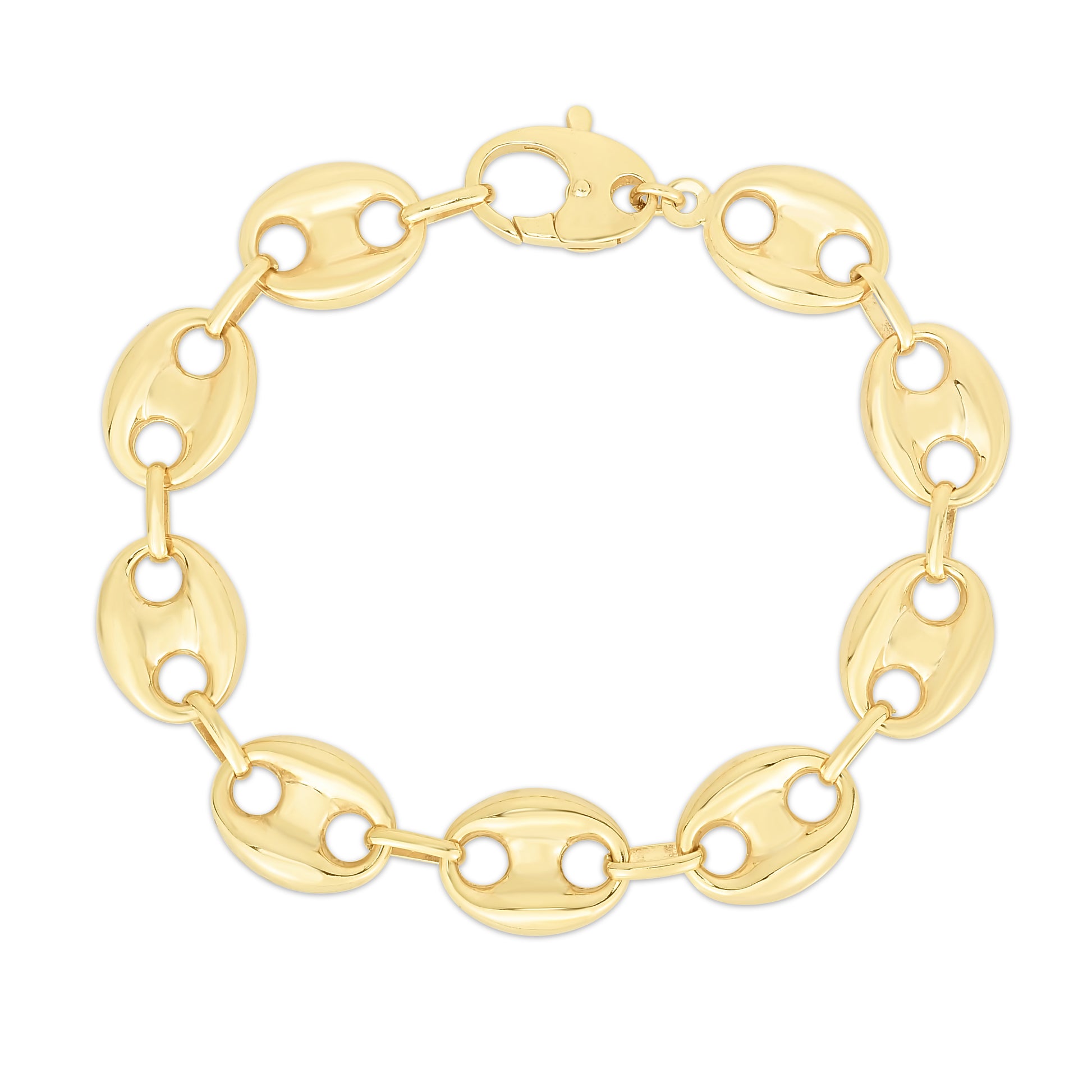 14K Yellow Gold 15mm Lite Puffed Mariner Link 7.75" Bracelet with Lobster Clasp