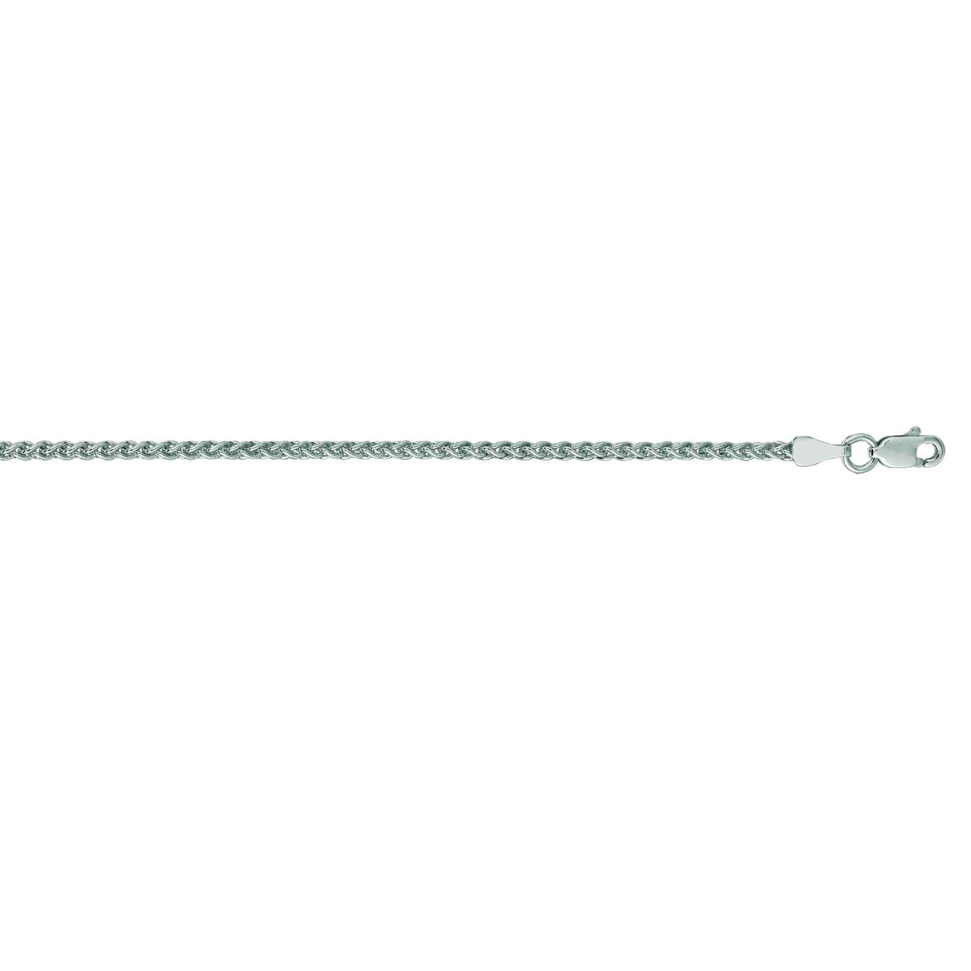 14K White Gold 2.1mm Round Wheat 16" Chain with Lobster Lock