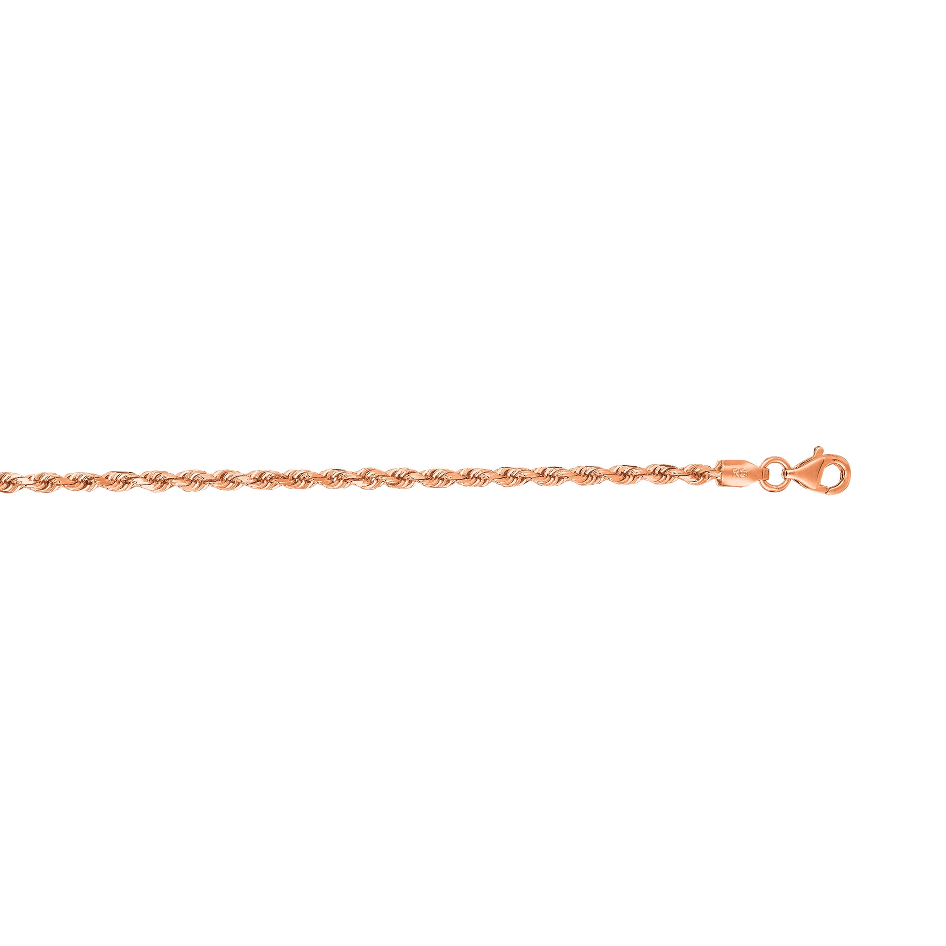 14K Rose Gold 2.3mm 18" Diamond Cut Solid Royal Rope Chain with Lobster Clasp