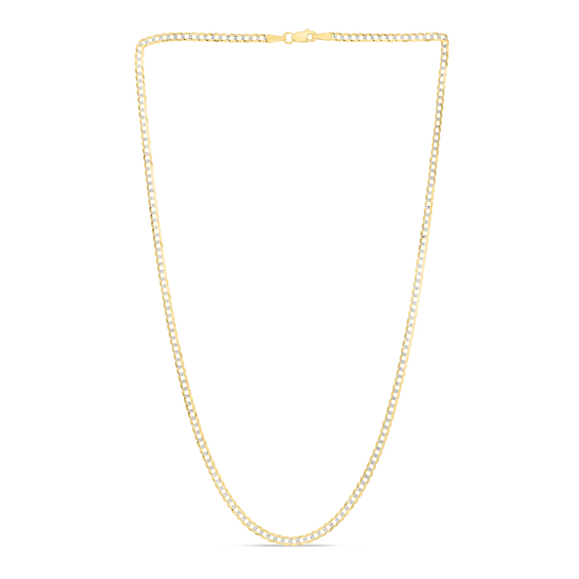 14K Yellow Gold 2.6mm White Pave Curb 16" Chain with Lobster Lock