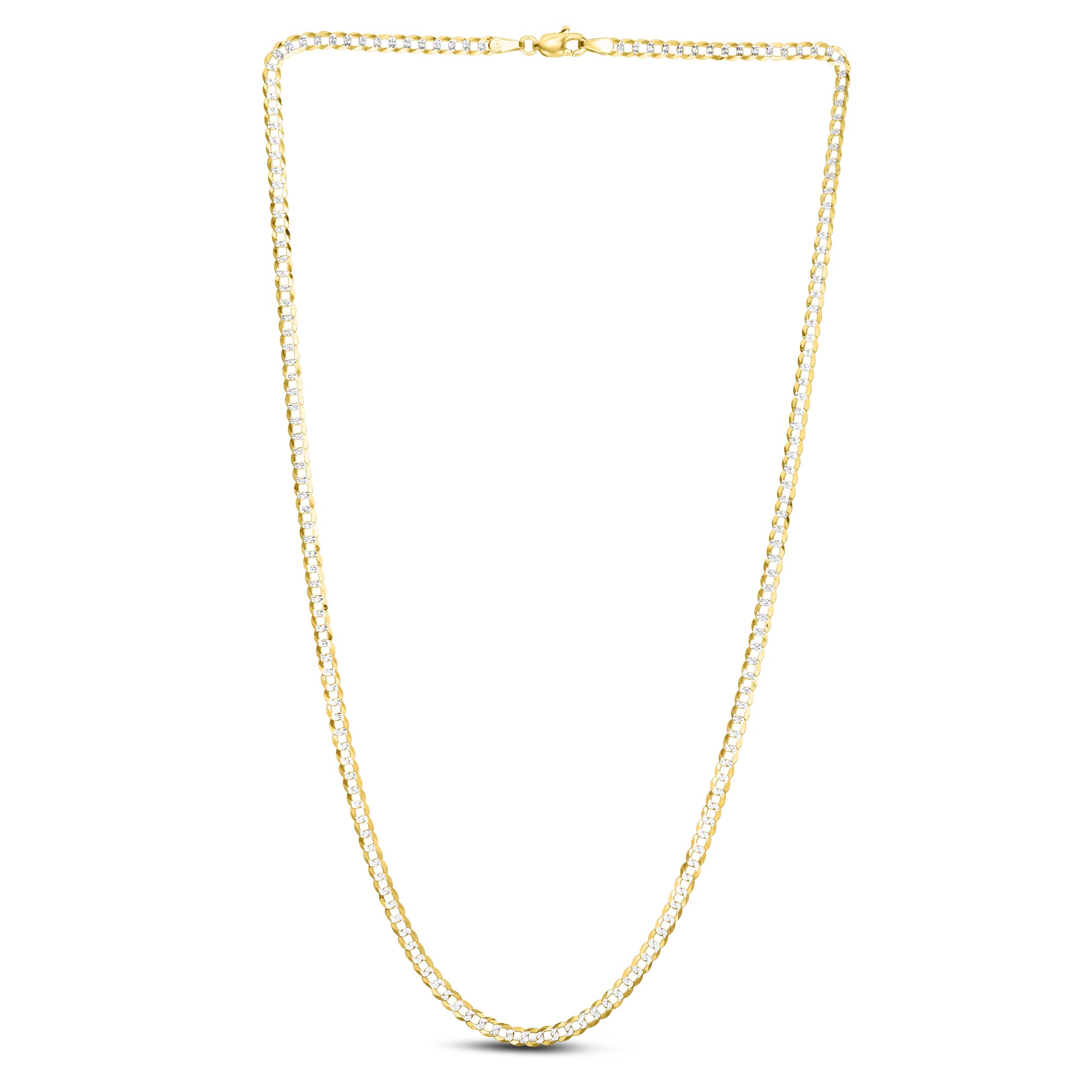 14K Yellow Gold 3.2mm White Pave Curb 16" Chain with Lobster Lock