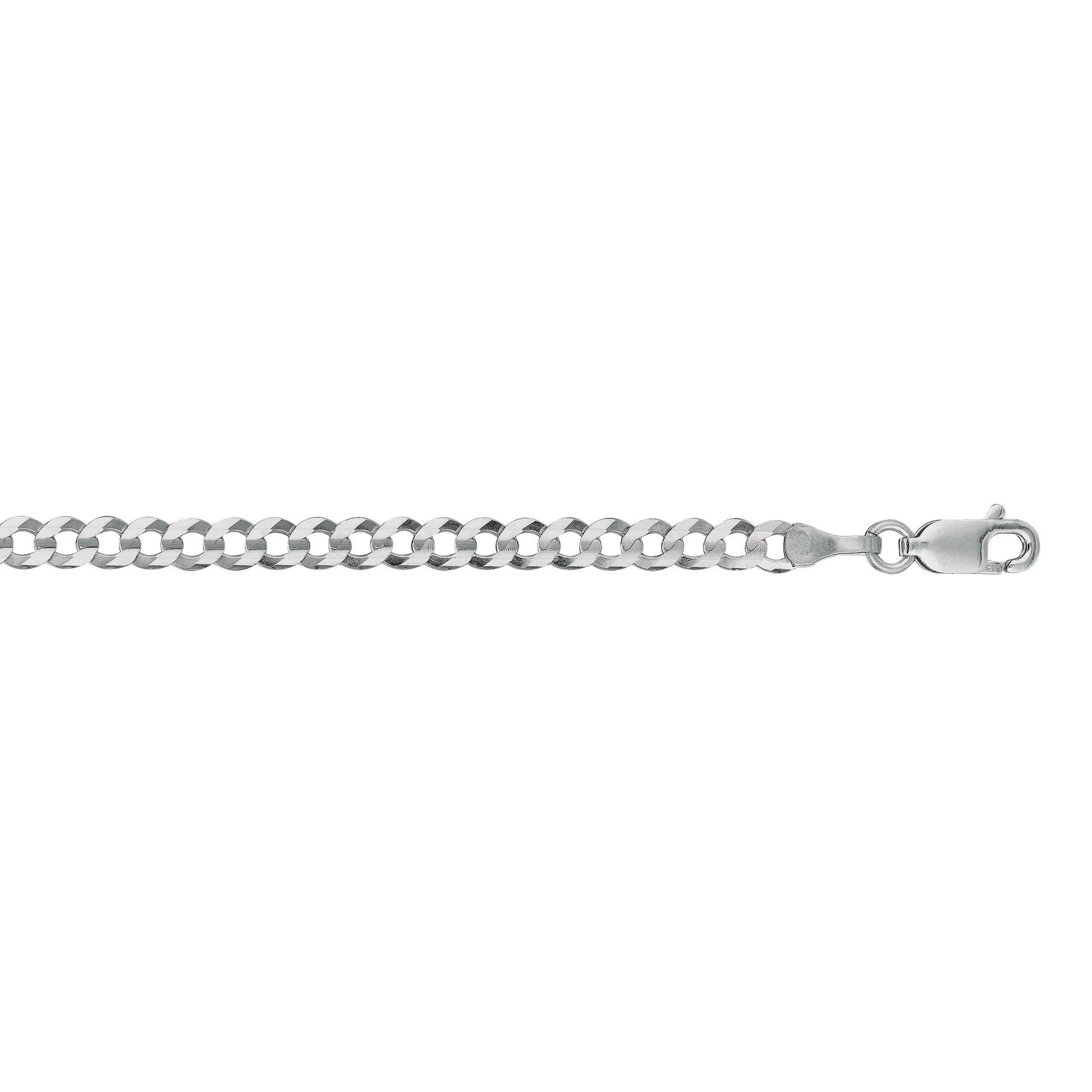 14K White Gold 3.6mm Comfort Curb 7" Chain Bracelet with Lobster Lock