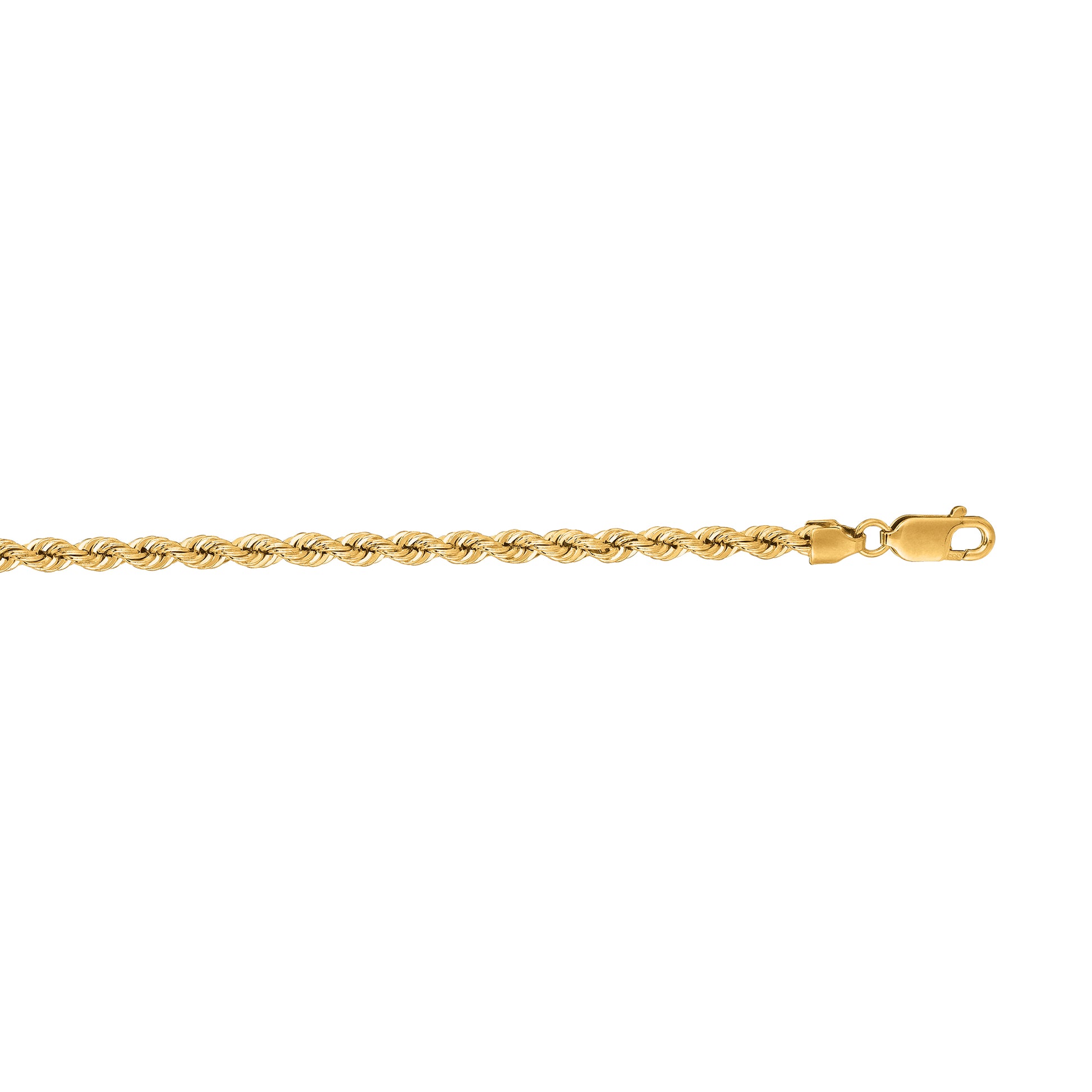 14K Yellow Gold 3mm Rope 8" Chain Bracelet with Lobster Lock