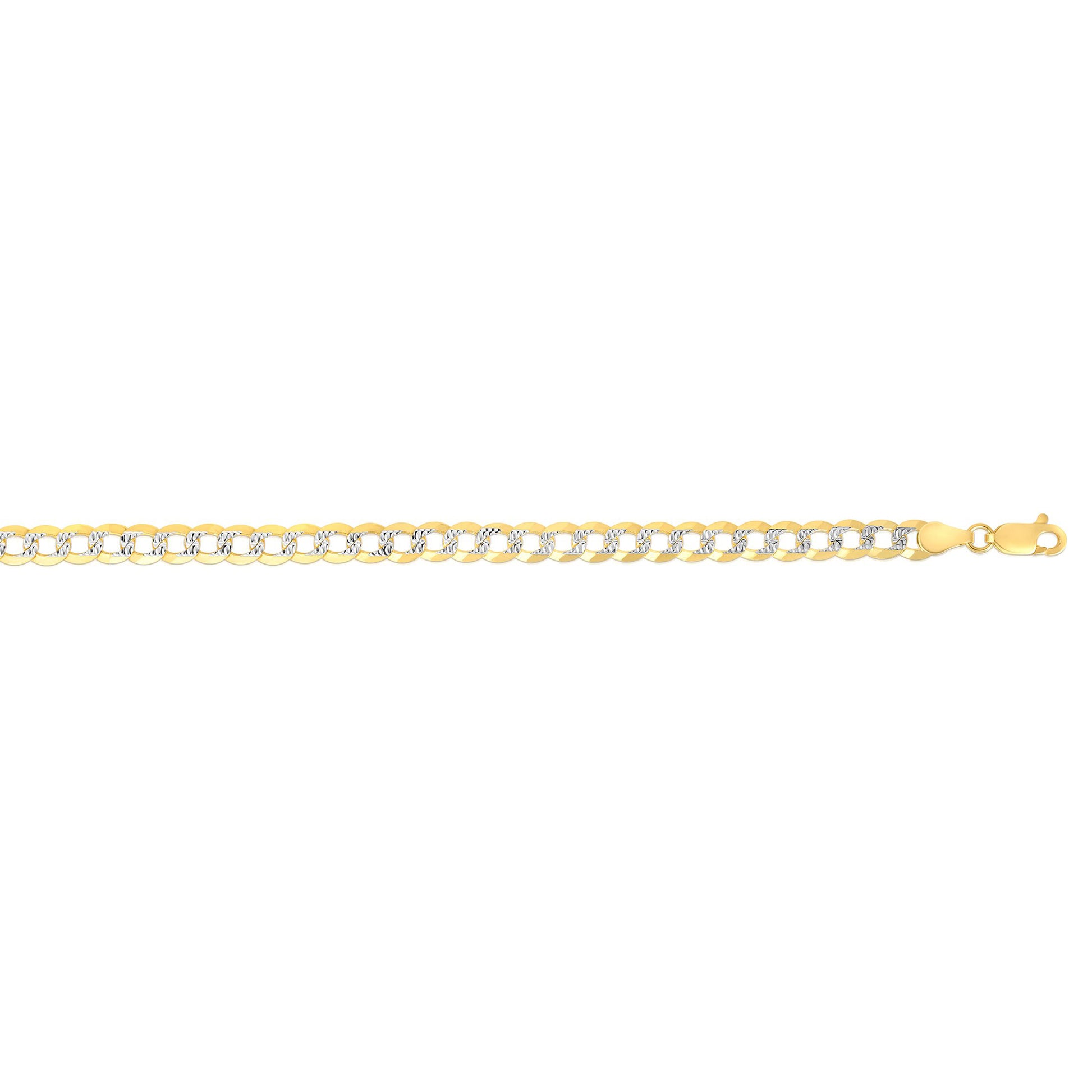 14K Yellow Gold 4.6mm White Pave Curb 8.5" Chain Bracelet with Lobster Lock
