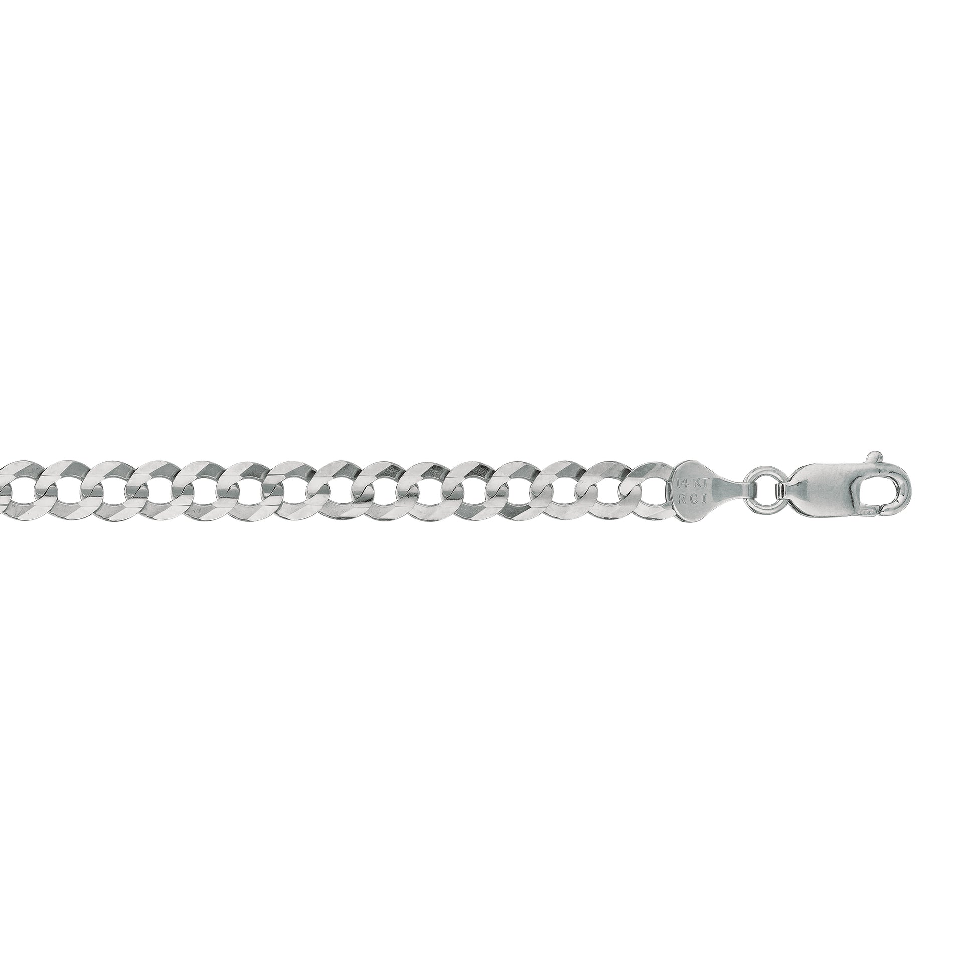 14K White Gold 5.7mm Comfort Curb 8.5" Chain Bracelet with Lobster Lock