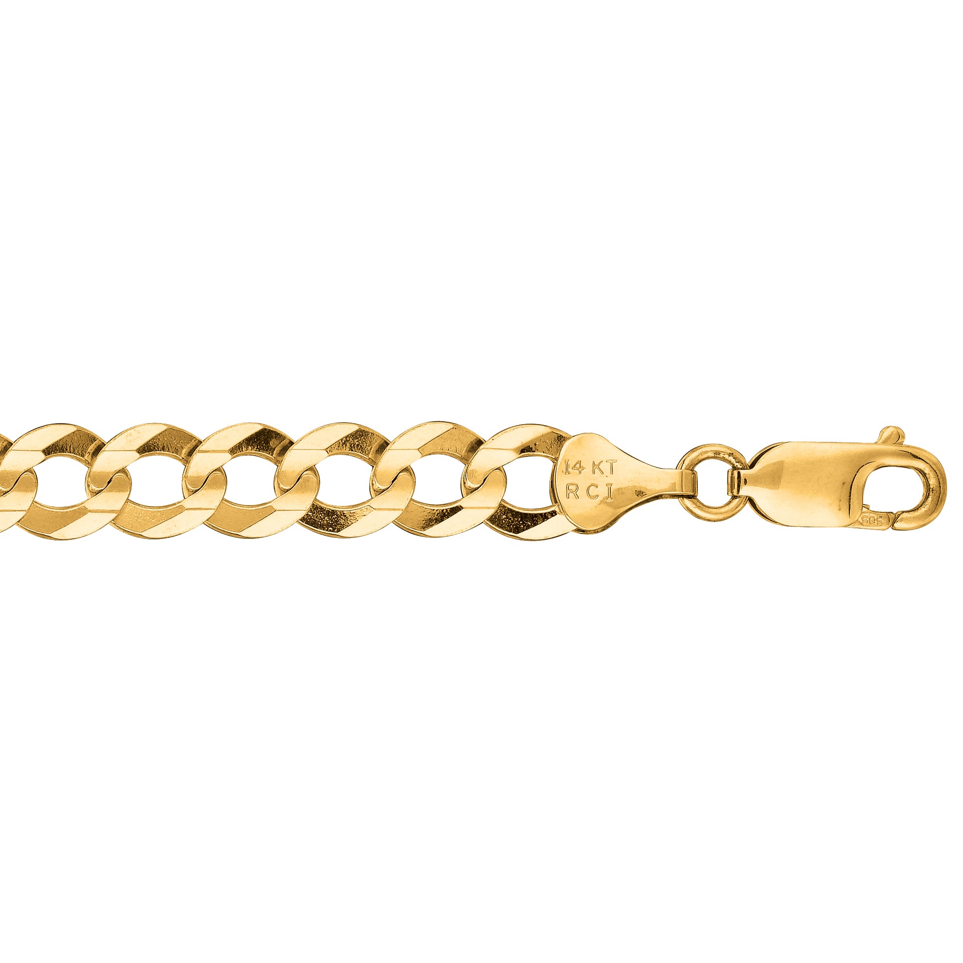 14K Yellow Gold 7mm Comfort Curb 8.5" Chain Bracelet with Lobster Lock