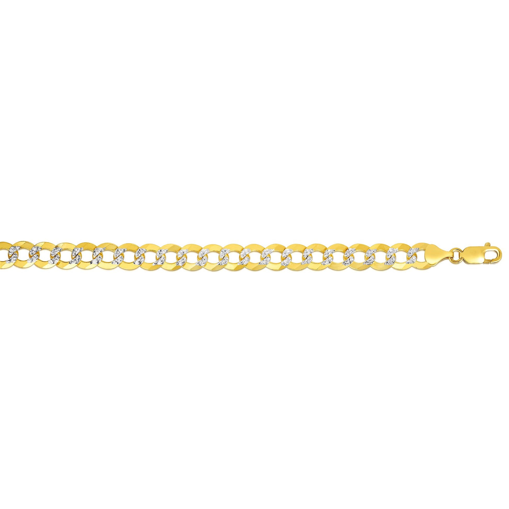 14K Yellow Gold 9.7mm White Pave Curb 8.5" Chain Bracelet with Lobster Lock