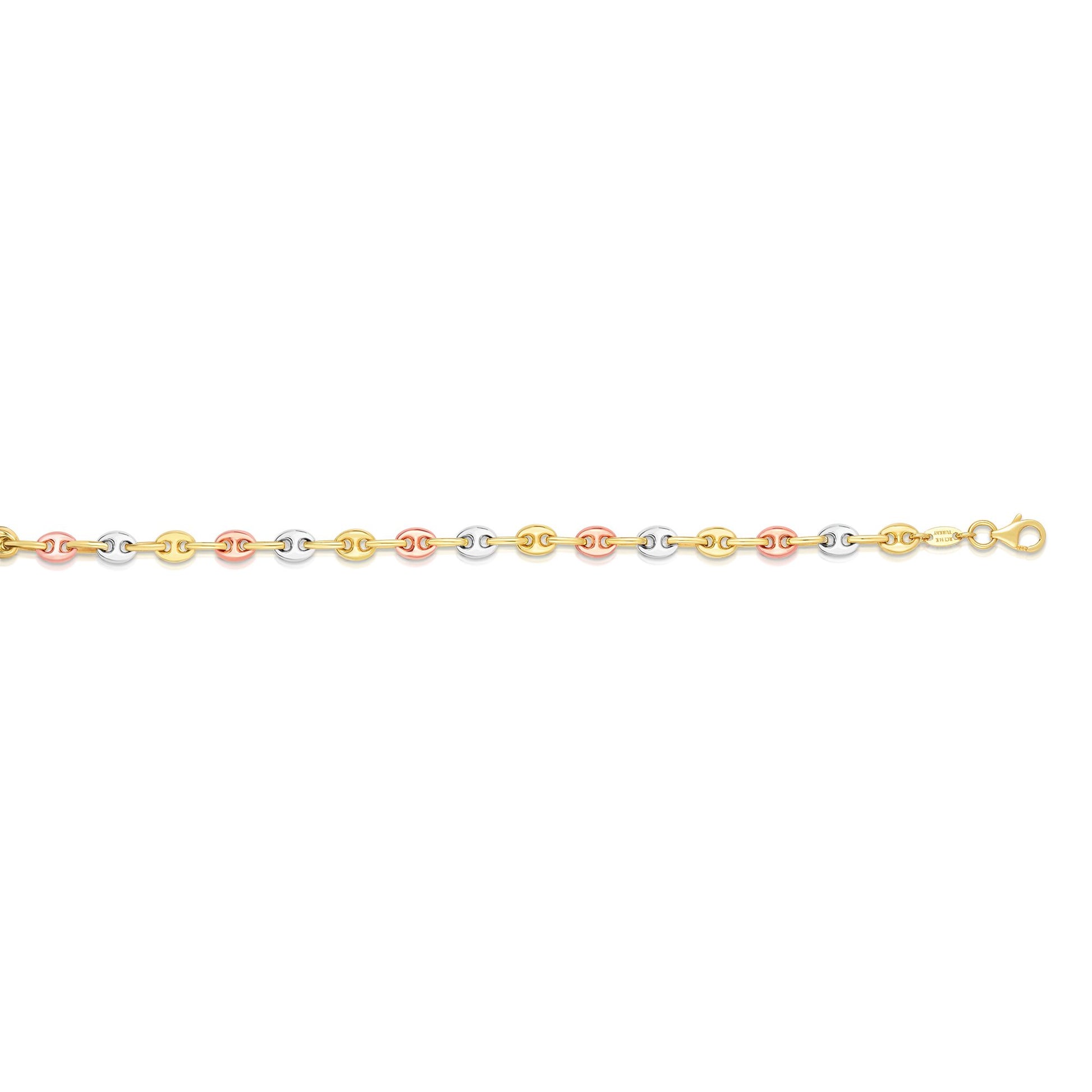 14K Tri-color Gold Puffed Mariner Link Bracelet