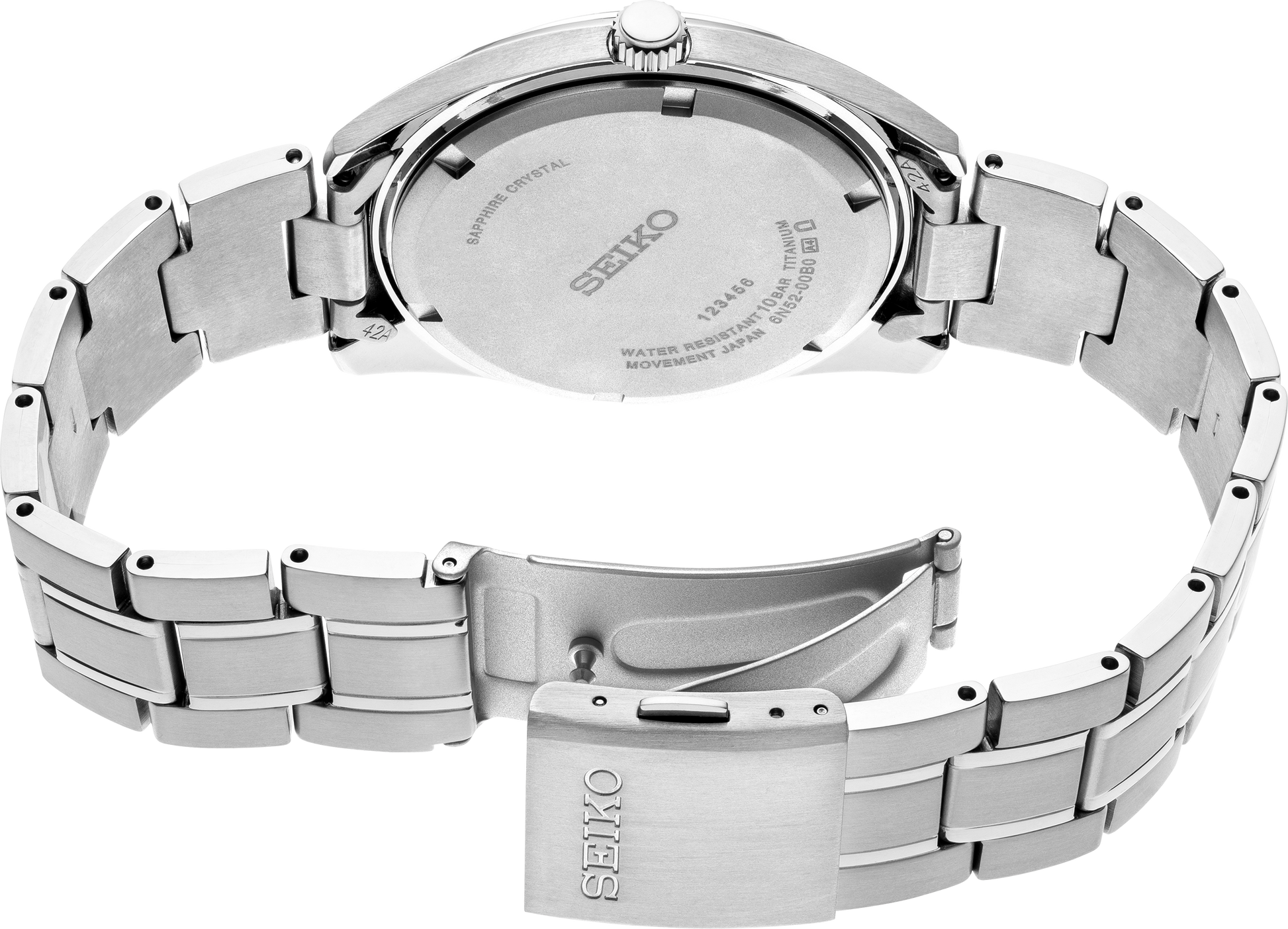 From the Essentials Collection. Offering classic dress/sport designs, the Essentials Collection provides the ideal solution for everyday wear. Crafted of durable and light-weight titanium, this perfectly tailored watch features a contemporary minimalist silver sunray dial with date calendar, for a superb blend of clarity and wearability. The sapphire crystal adds superior scratch resistance. 10 bar, 100M Water Resistant