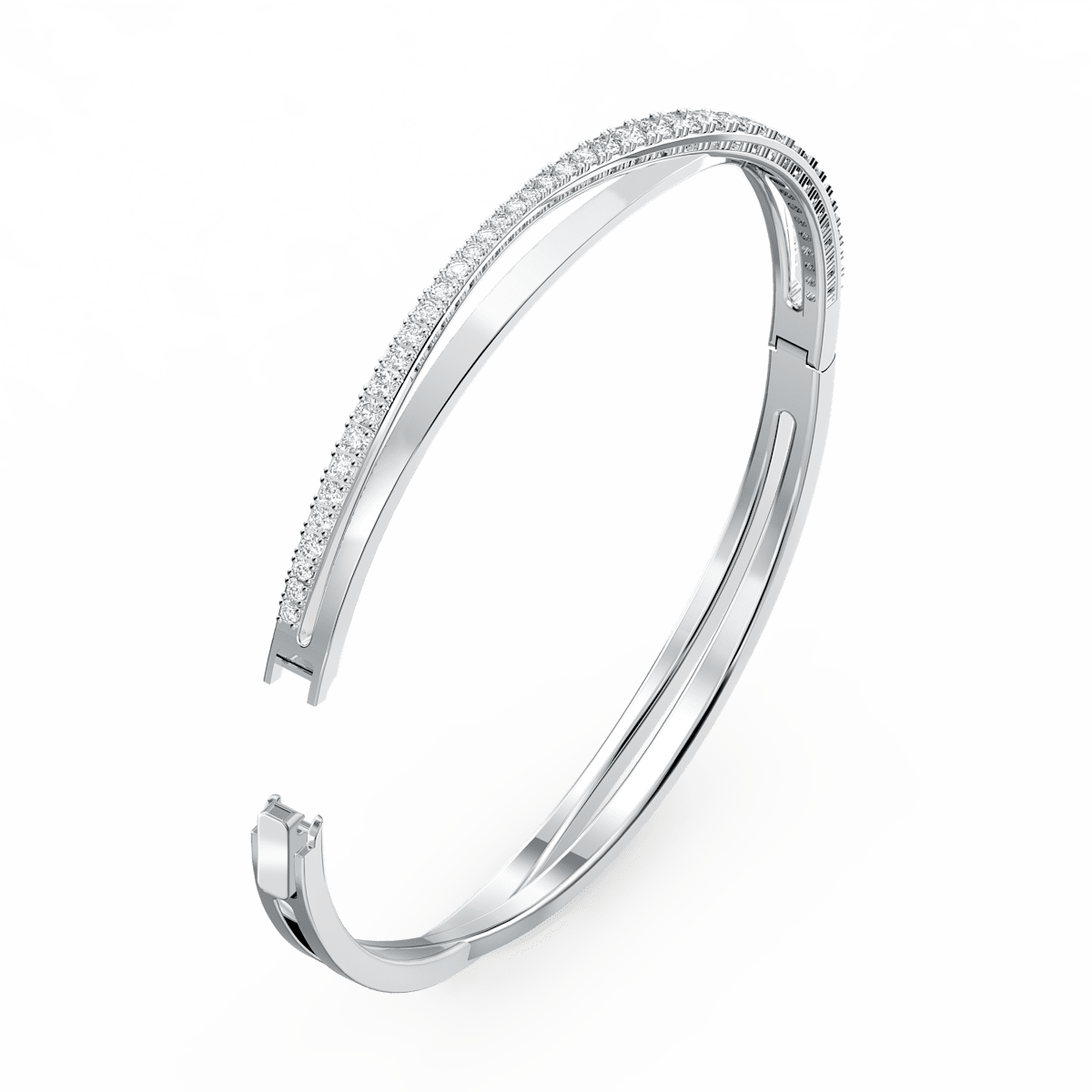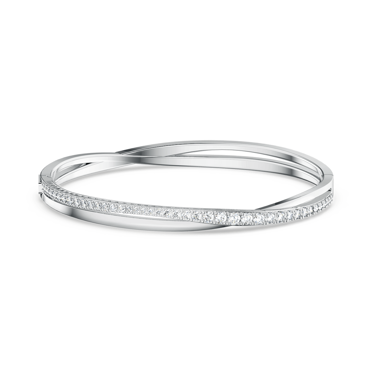 This beautiful bangle by Swarovski exhibits timeless, understated elegance in a modern interpretation of the spiral trend. A brilliant line of sparkling white stones follows the gently curving lines of the bangle, adding glittering radiance to the design. On-trend and refined, this bangle complements your everyday looks with a brilliant touch.