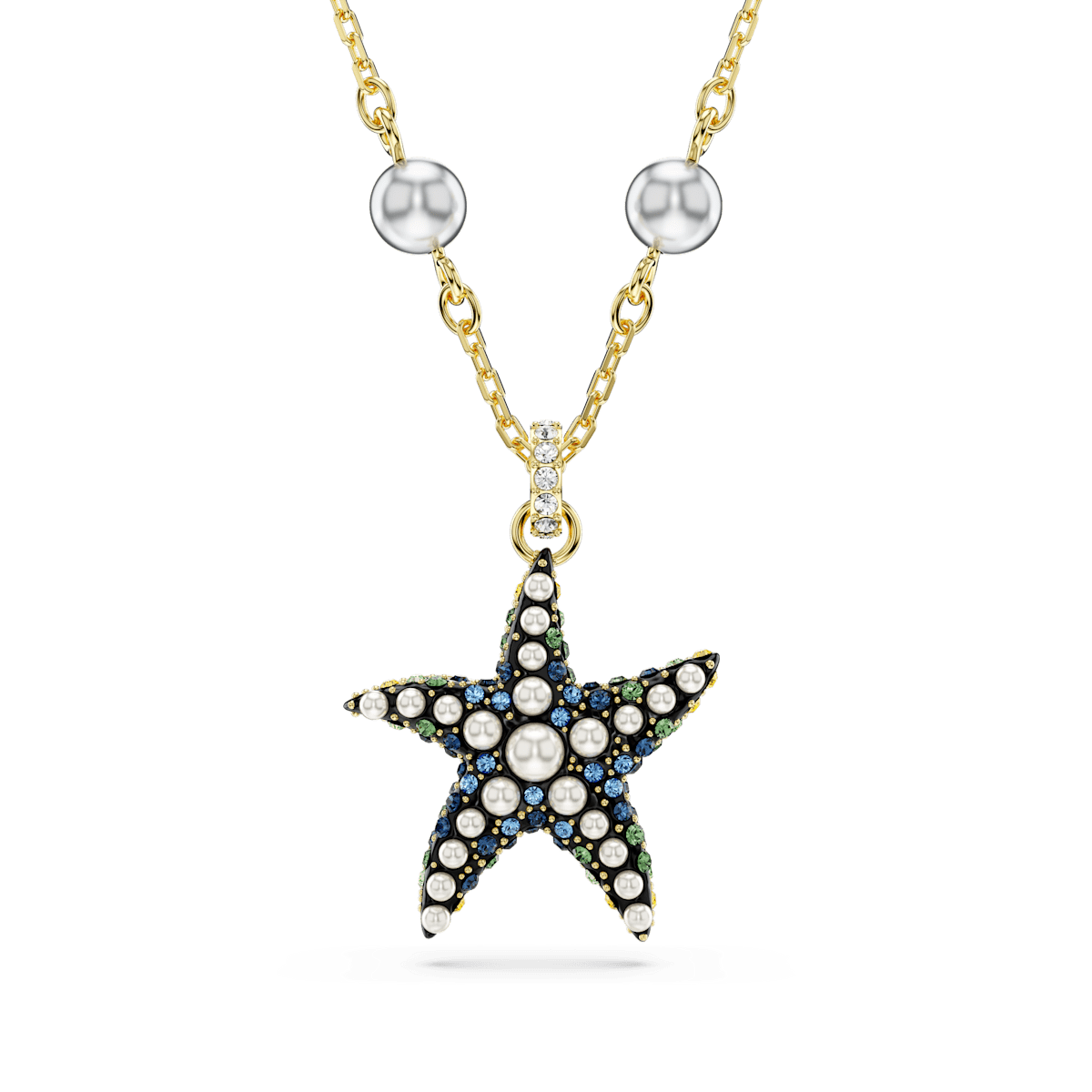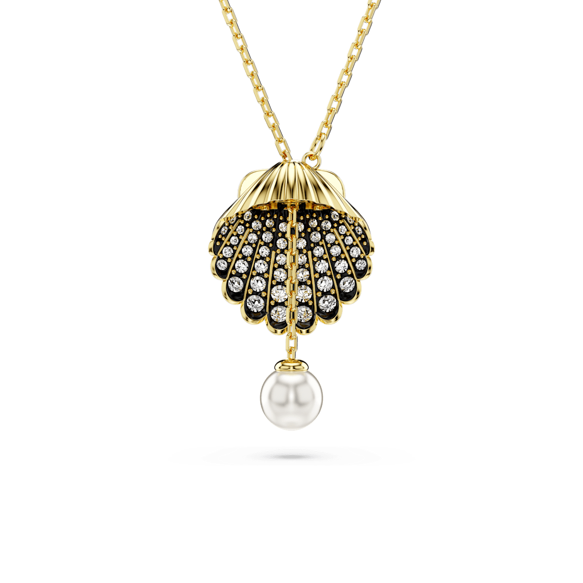 Capturing the serenity and beauty of the ocean, this Idyllia pendant will bring a touch of marine inspiration to your style. The gold-tone plated piece is worn on a delicate necklace and features a shell motif at the center. This has been artistically adorned with clear round crystals placed within a black setting, while a single Crystal Pearl sits inside. For extra versatility, the pearl can be pulled out of the shell, adjusting the style into a Y-shape design. A simple and captivating way to feel at one with the sea.