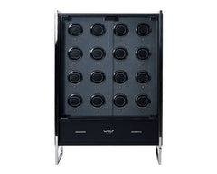 The 16 Piece Watch Winder Cabinet will keep 16 watches perfectly wound and protected, while the drawer accommodates additional watch storage for 4 watches, and a removable Triple Watch Roll for 3 watches with hidden capsule for those most precious things.