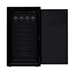 The ultimate in security for your watches, jewelry valuables. Forged in American steel, UL tested and certified for burglary fire, the Atlas is an impenetrable fortress. Painted steel polished to a mirror finish, drawers lined with LusterLoc™ treated fabrics that stop tarnishing for 35 years. Watch winders are controlled by WOLF’s Bluetooth connected App. Control one or all winders at the same time.