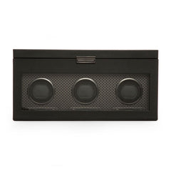 Powder-coated and copper-plated laser cut perforated steel melded with clean, sleek lines. the Axis collection drives a modern, bold look for safekeeping your timepieces. Our patented technology of counting rotations of the axis of your watch guarantees precise Turns Per Day.