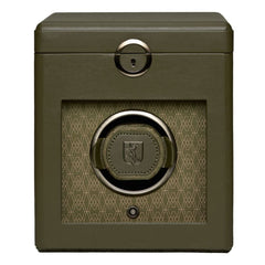 The Earth Single Watch Winder, from the 190th anniversary collection, brings together innovative design, elegance and sustainability. Featuring an apple leather exterior with toning matt metallic hardware and bezel combined with a recycled jacquard silk interior with the WOLF signature pattern. The Dynamic Lock-in Cuff is customisable to three different wrist sizes and locks your watch inside the winder. Choose your watch’s required Turns per Day and direction via the WOLF Bluetooth app. In the top storage section find a handy removable circular zip case and storage for two more watches